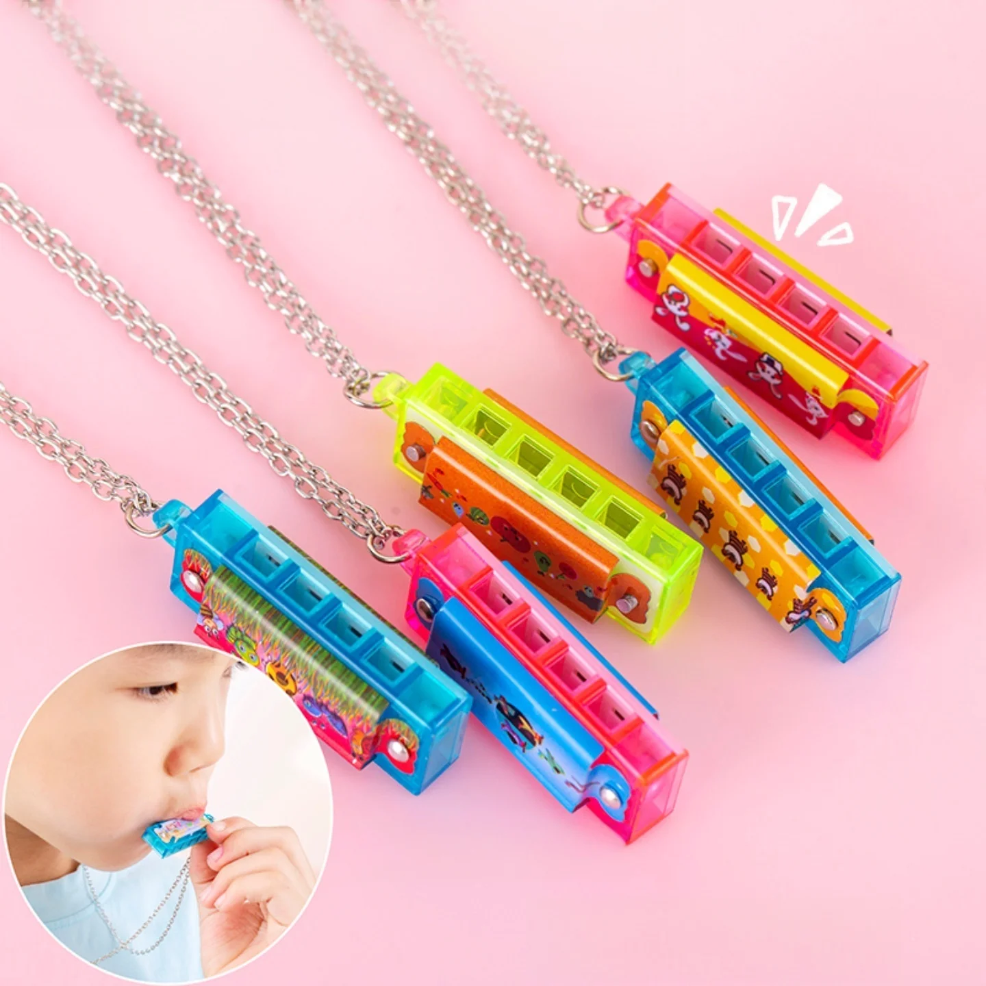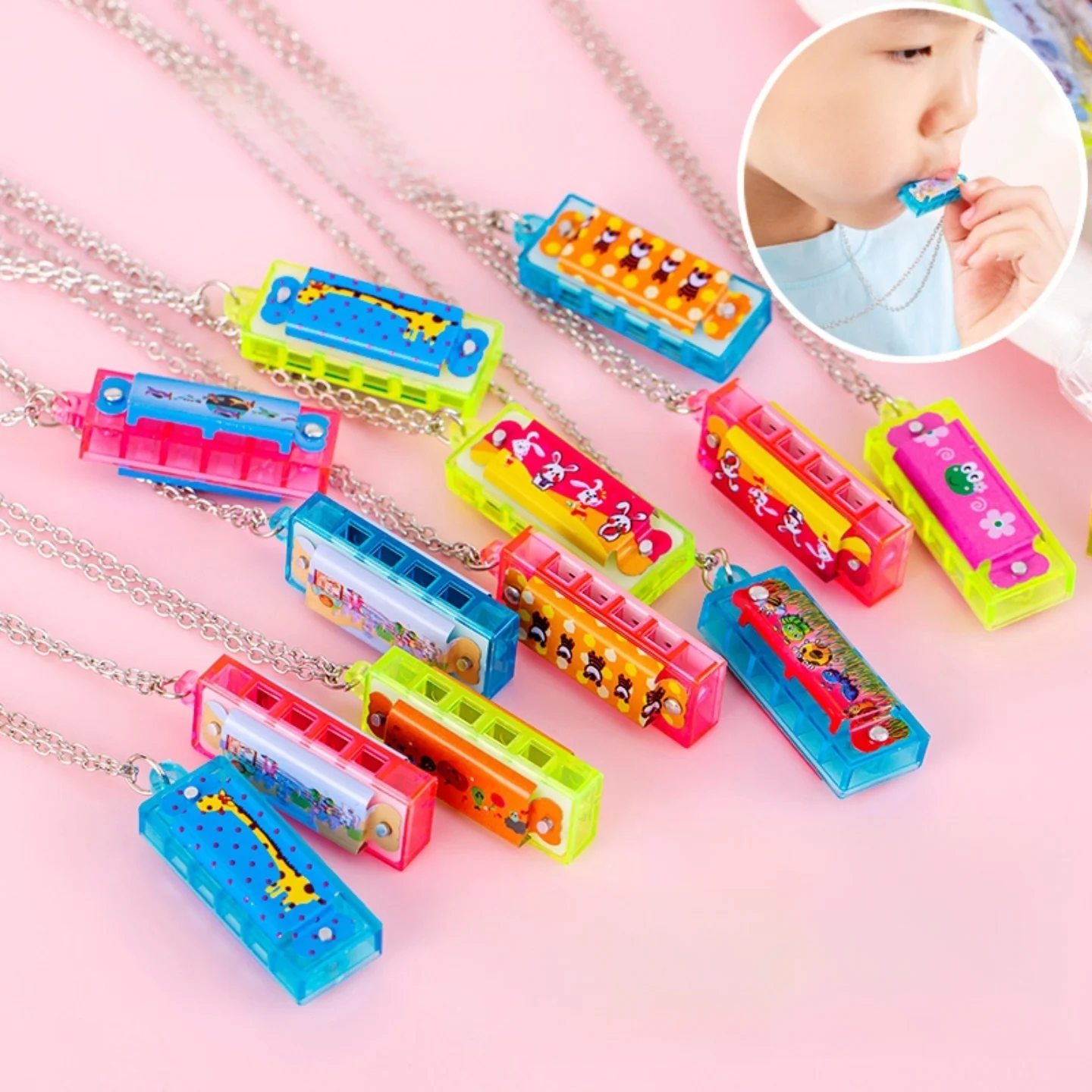10Pcs Cartoon Mini Harmonica with Necklace Musical Instrument Toys for Kids Birthday Party Favors Baby Shower Pinata Fillers