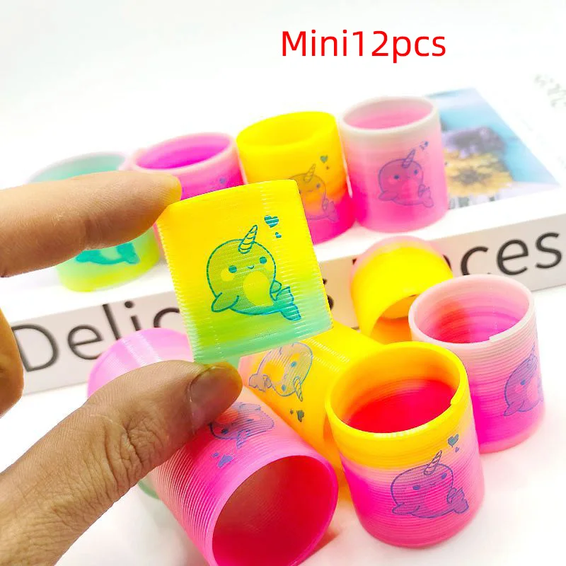 12/24 pcs Rainbow Magic Circles Mini Colorful Coils Toys Kids Birthday Party Favors Small Gifts Opposite-Sex Round Elastic Rings