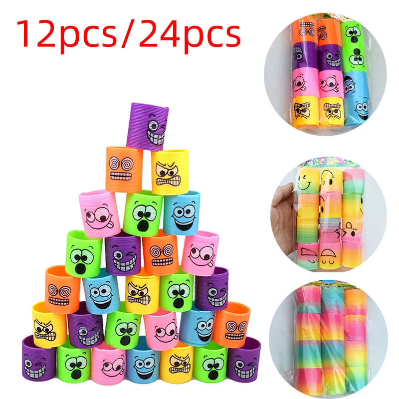 12/24 pcs Rainbow Magic Circles Mini Colorful Coils Toys Kids Birthday Party Favors Small Gifts Opposite-Sex Round Elastic Rings