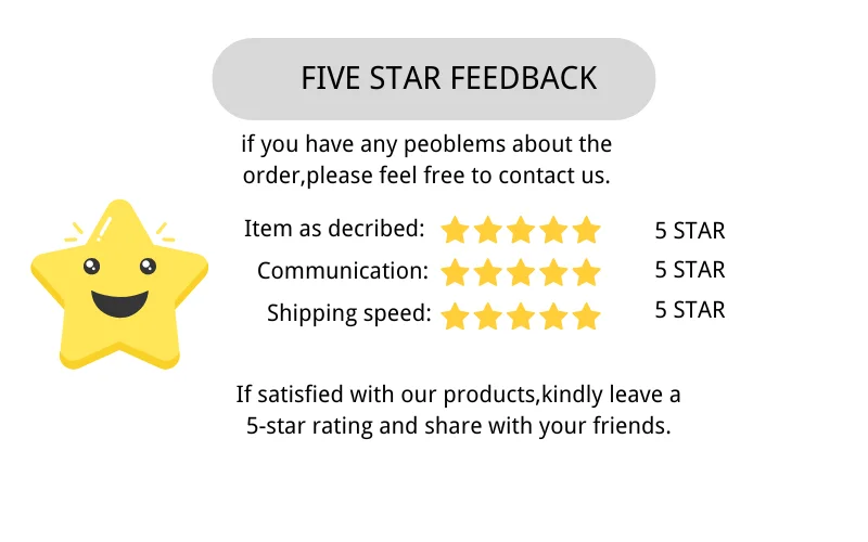 1.Your confirmation will be highly appreciated after receiving the items. Once you have received the product, hope you could leave us a positive feedback(5 stars).