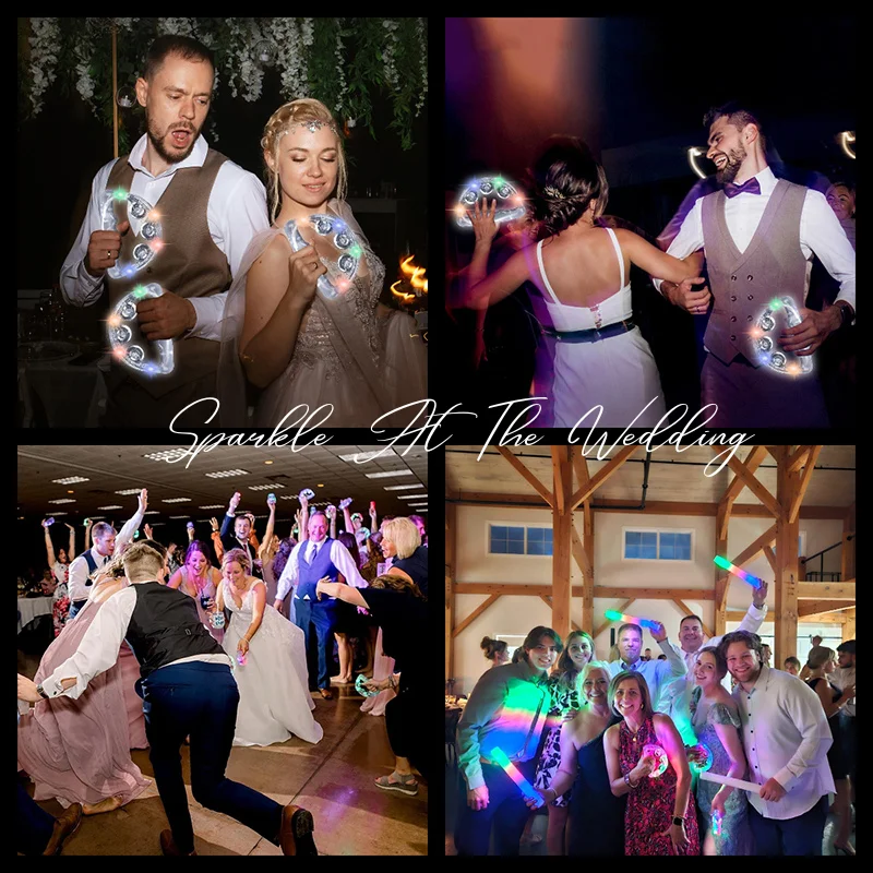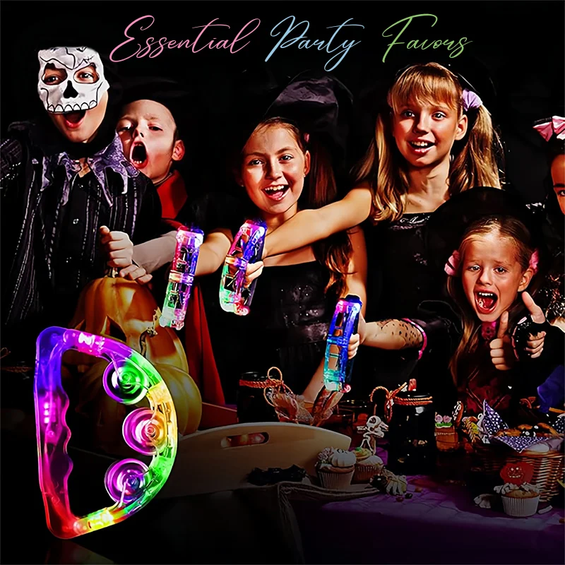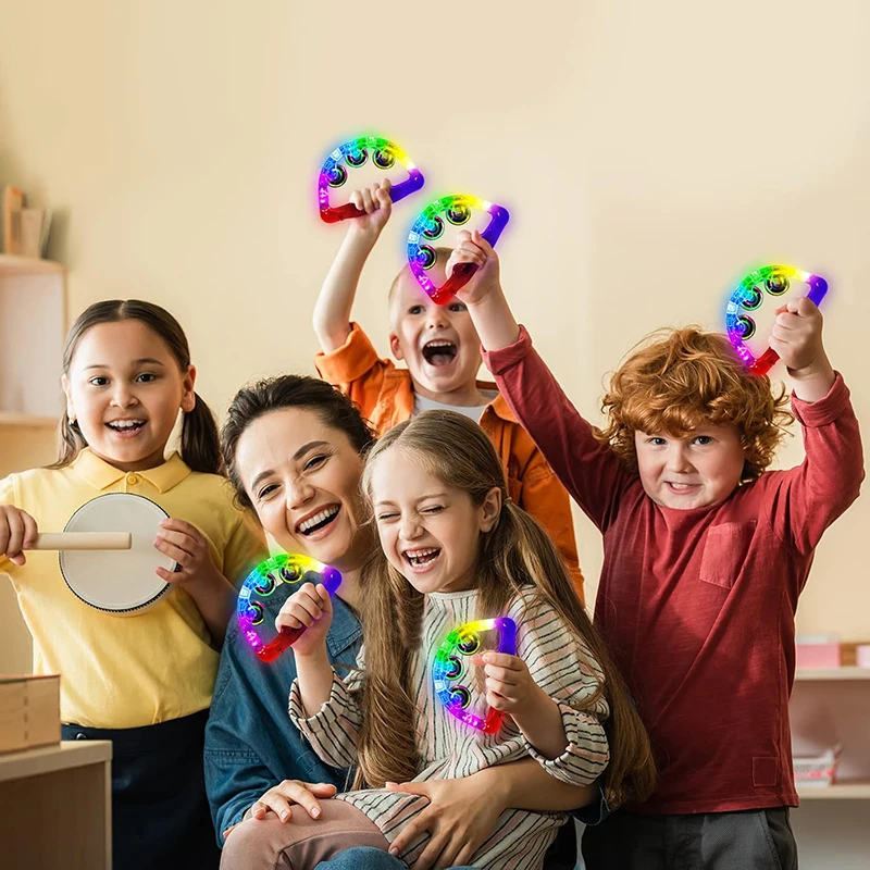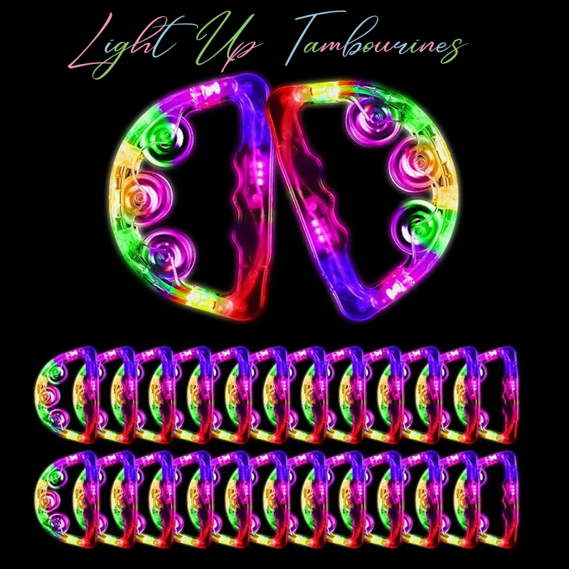 12-48Pcs Light Up Tambourines For Adults LED Noisemaker Mini Tambourine Dance Floor Props Wedding Party Favors