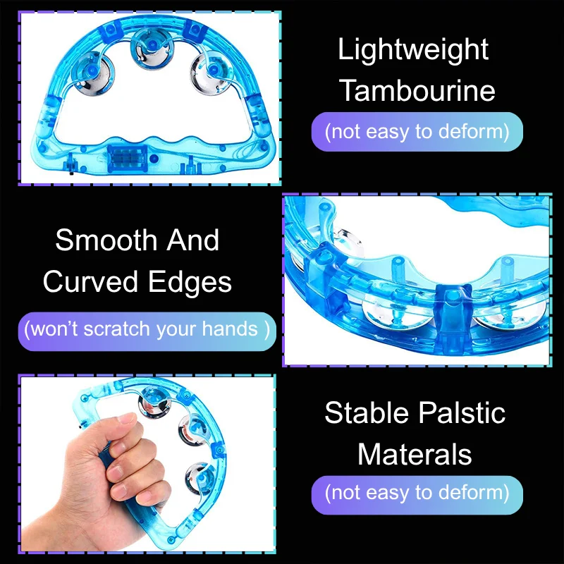 The LED tambourine is made of quality plastic and stainless steel material, no burrs.