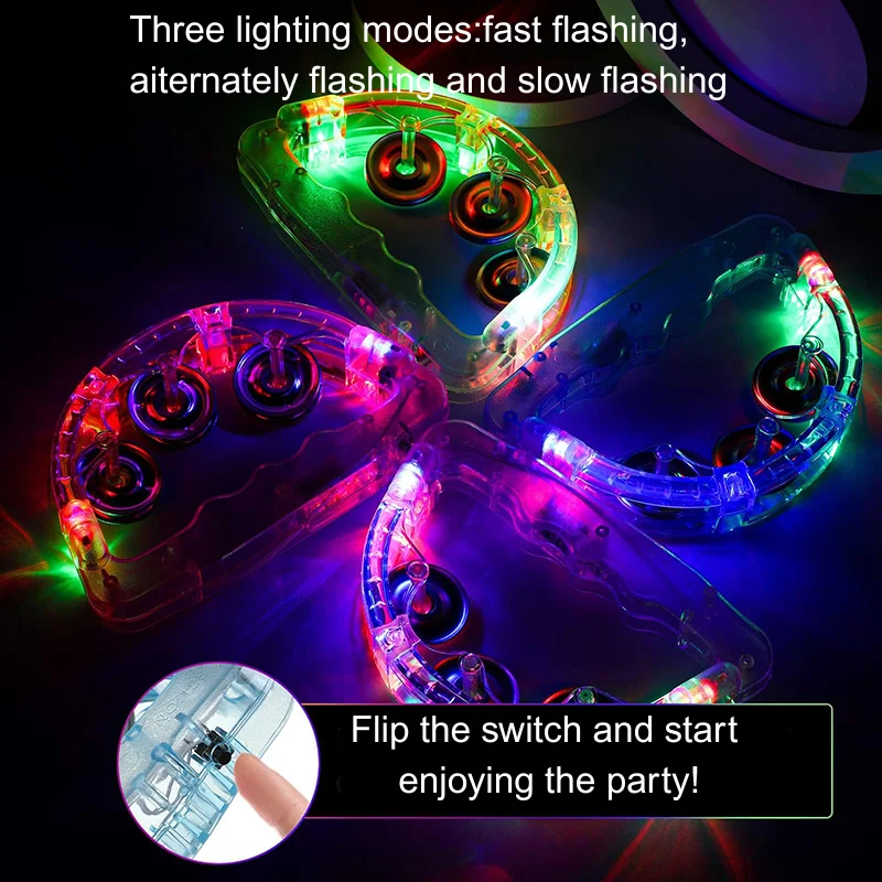 The flashing tambourine can be switched between 3 modes,fast flashing, slow flashing and alternating flashing.