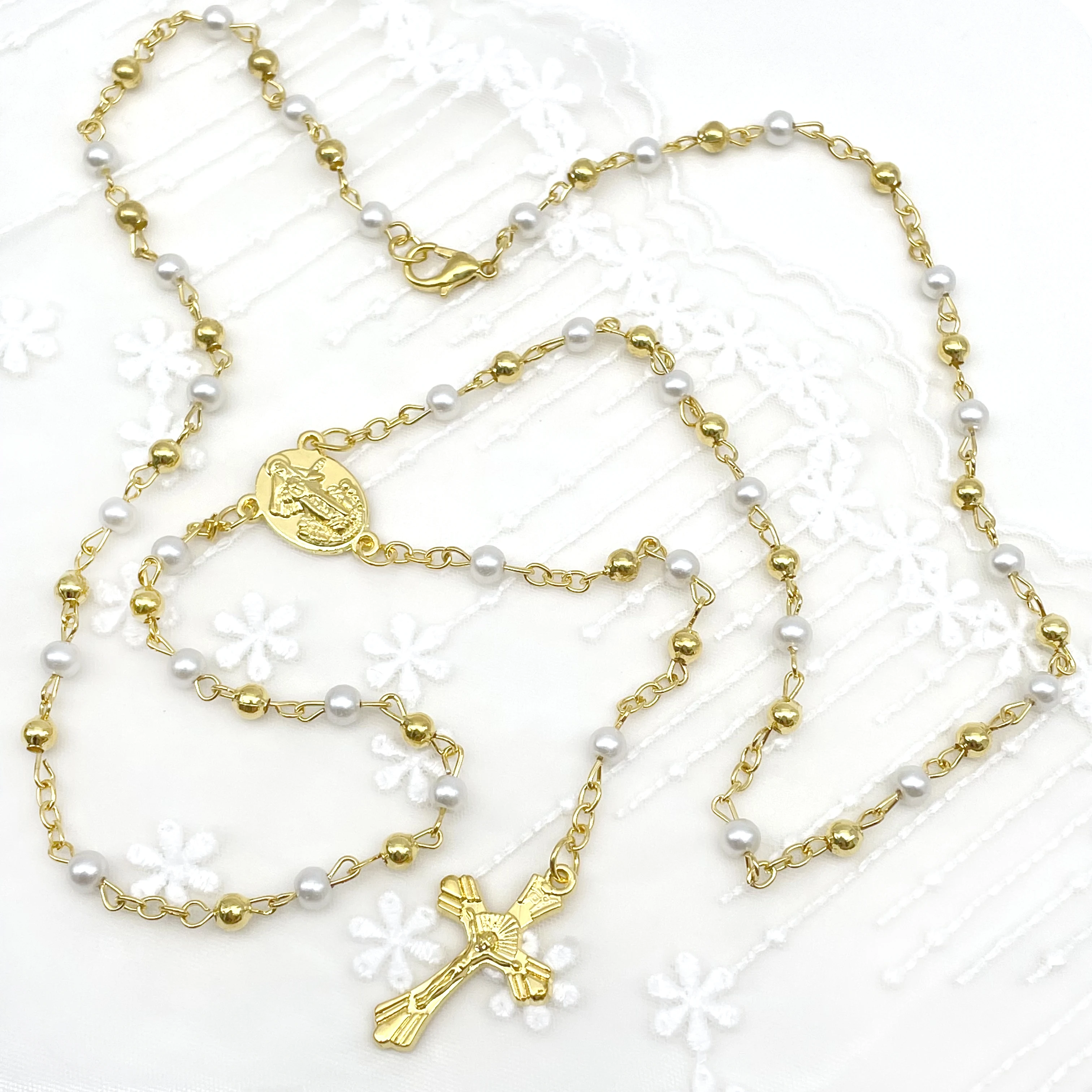 12X Baptism Rosary White Gold Party Favors Recuerdos De Bautizo/Quinceanera /Boda/Communion