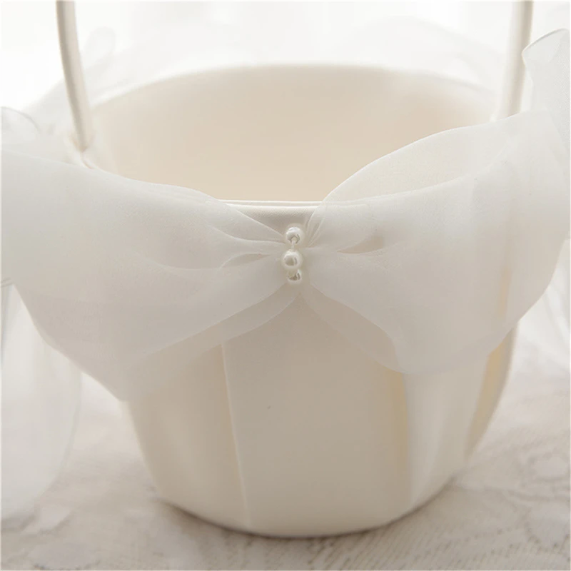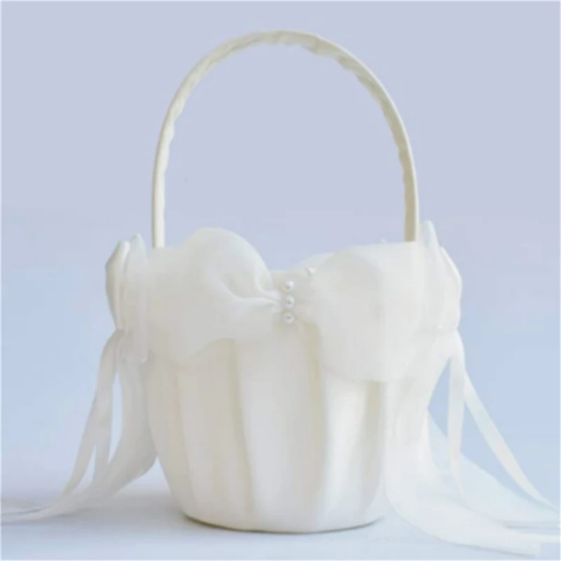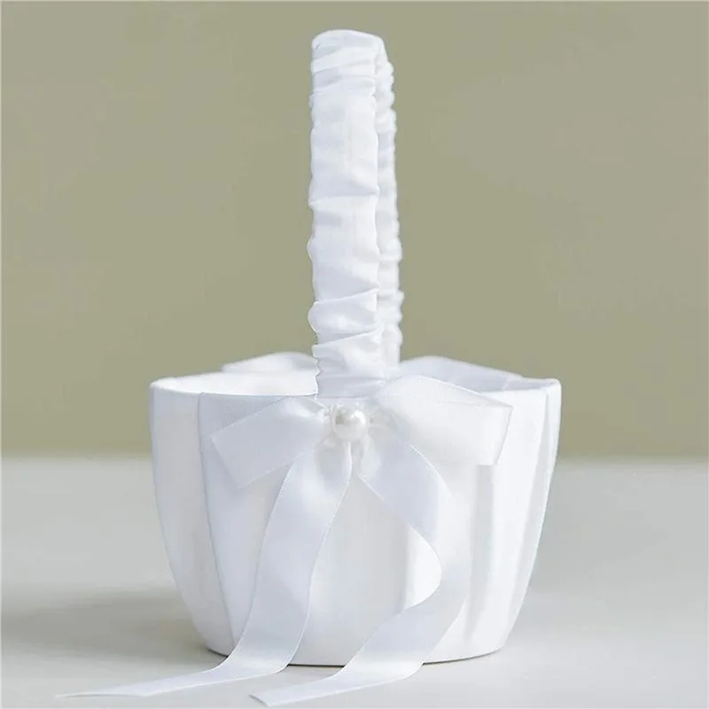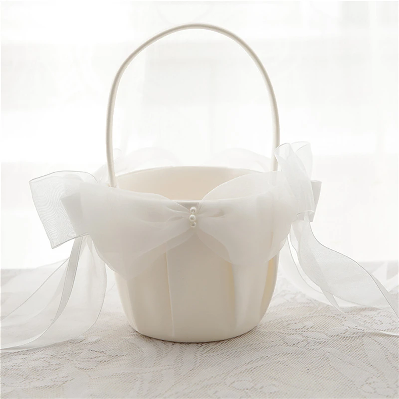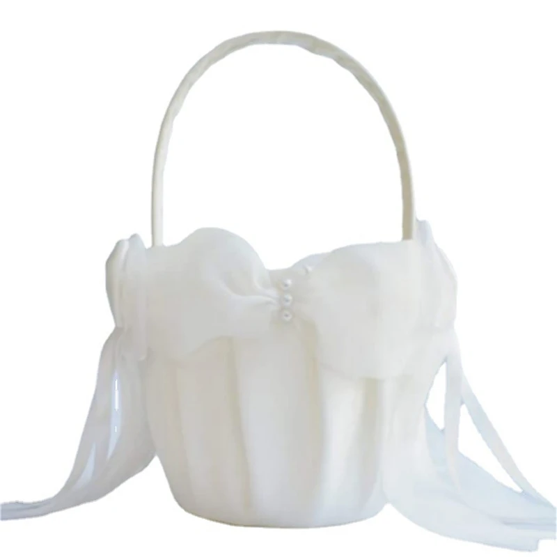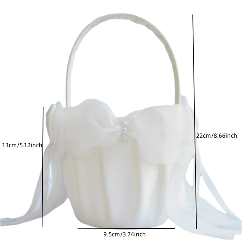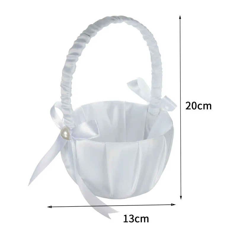 20 cm White Flower Girls Basket Silk Wedding Basket for Flower Bride/Kids Hand Held Wedding Ceremony Party Decorations