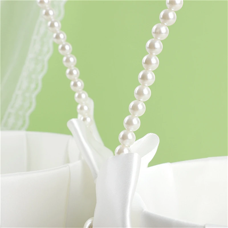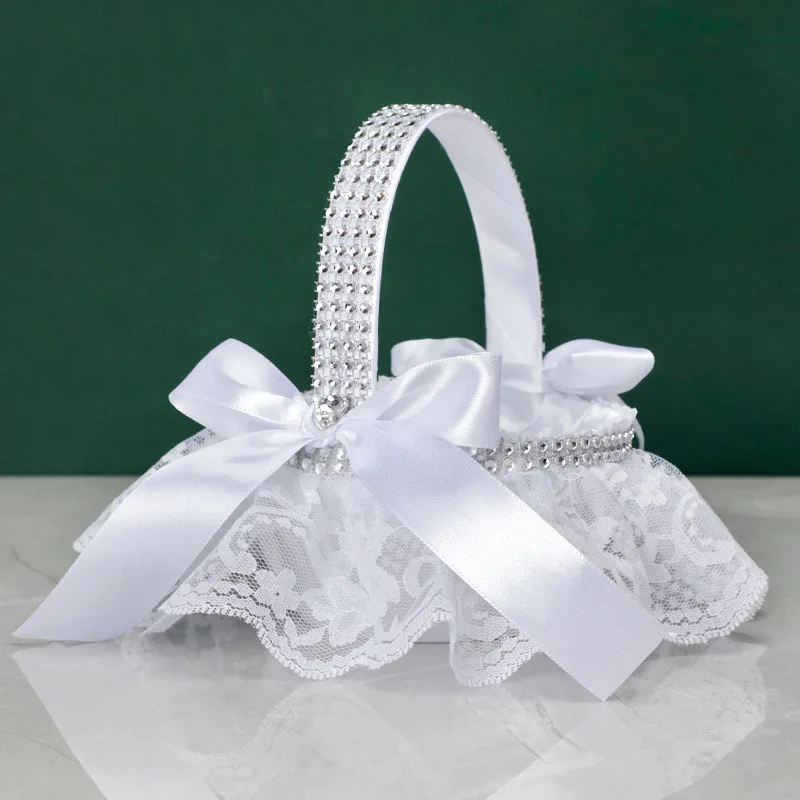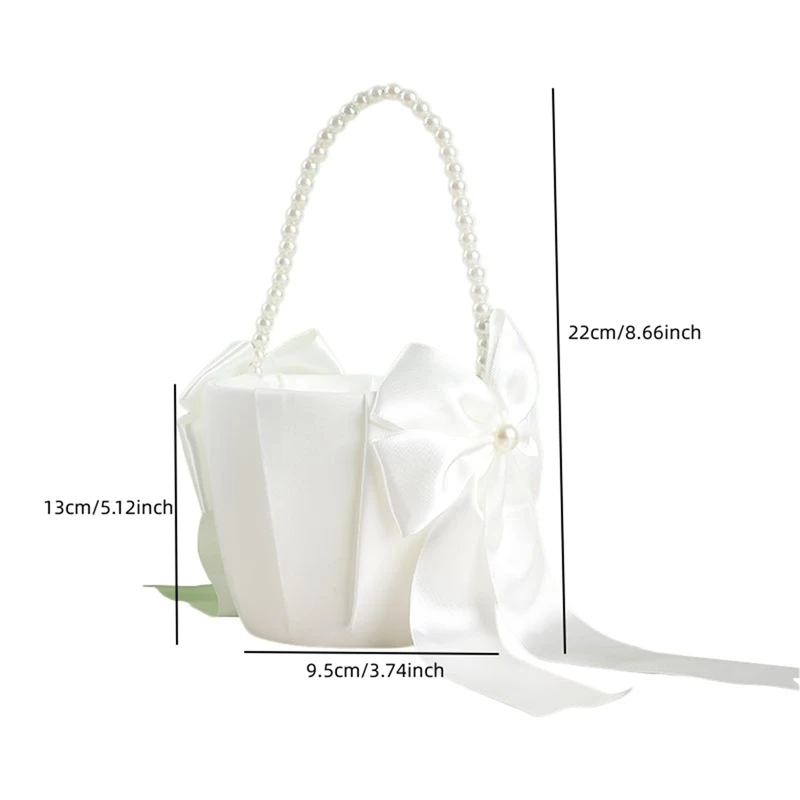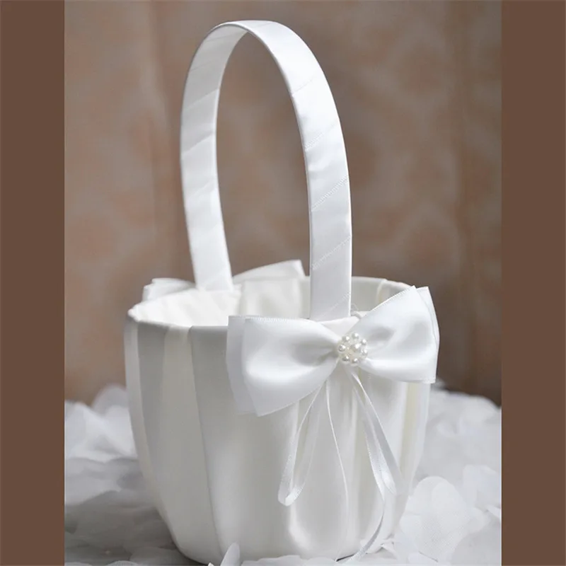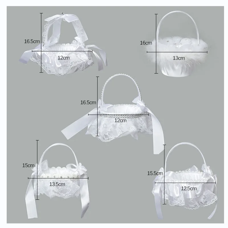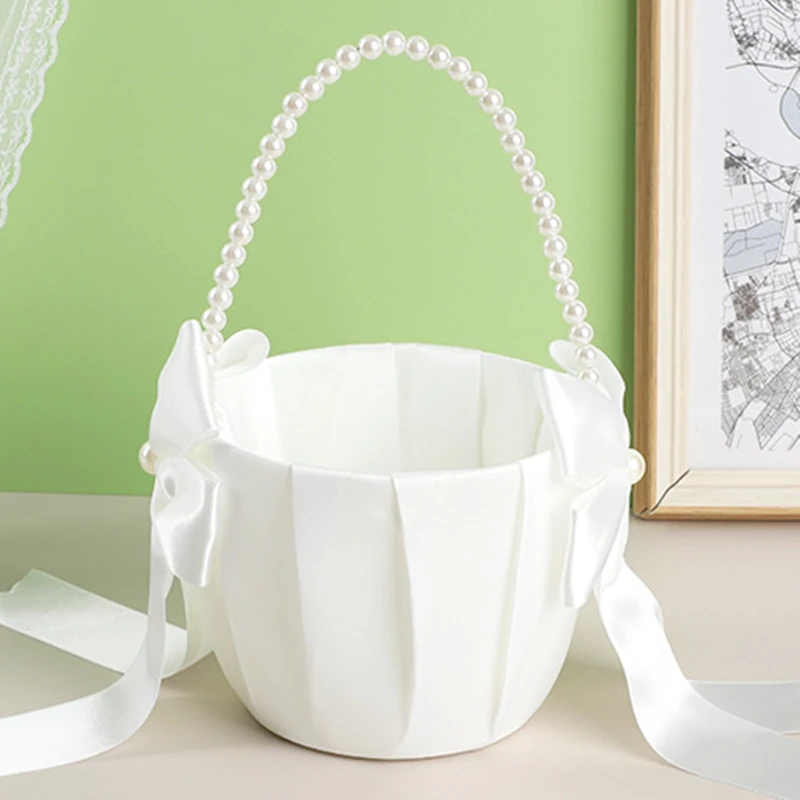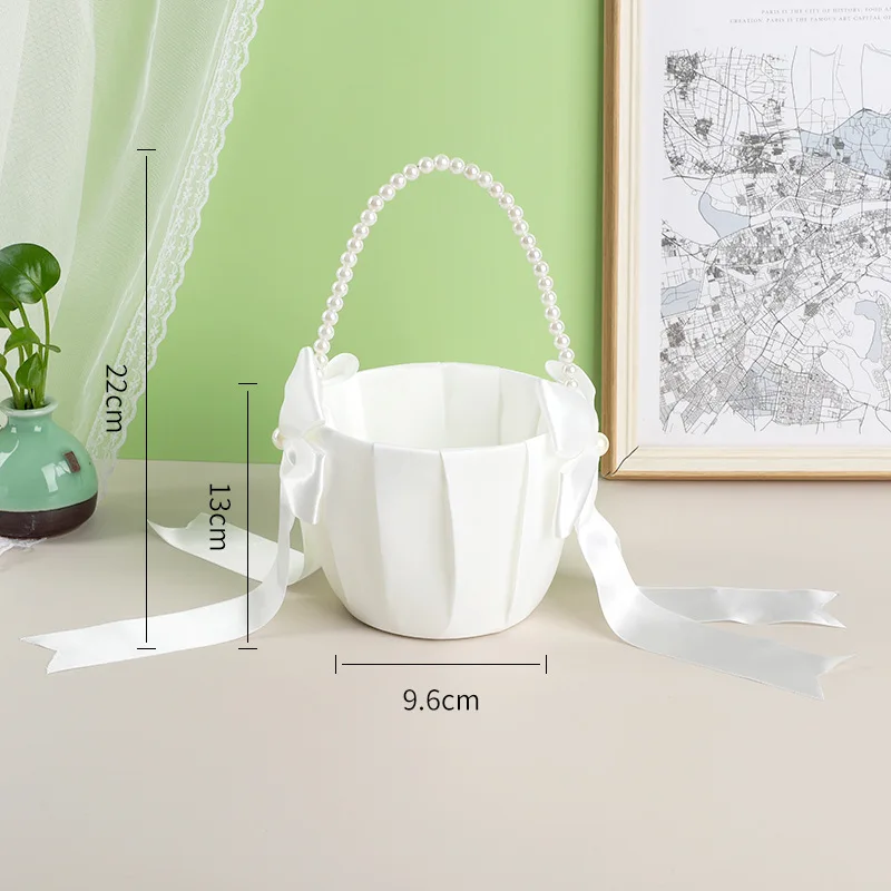 20 cm White Flower Girls Basket Silk Wedding Basket for Flower Bride/Kids Hand Held Wedding Ceremony Party Decorations