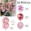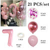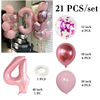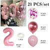 21pcs Pink 40inch Number Foil Latex Balloons Happy Birthday Party Decorations Kids Girl Baby 1 2 3 4 5 6 7 8 9 Year Old Supplies