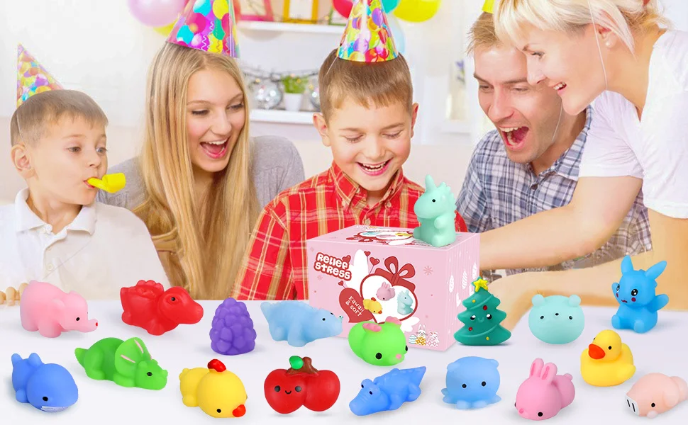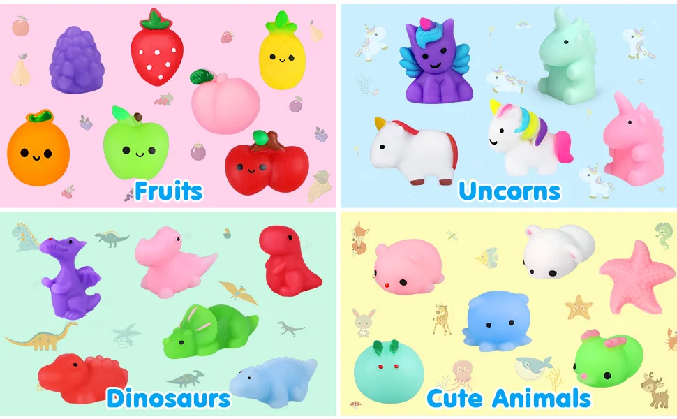 25/60/130 Pack Mochi Squishy Toys for Kids,Squishies Sensory Bulk Toys,Stress Relief Toys, Party Favors Mini Animals Toys Set