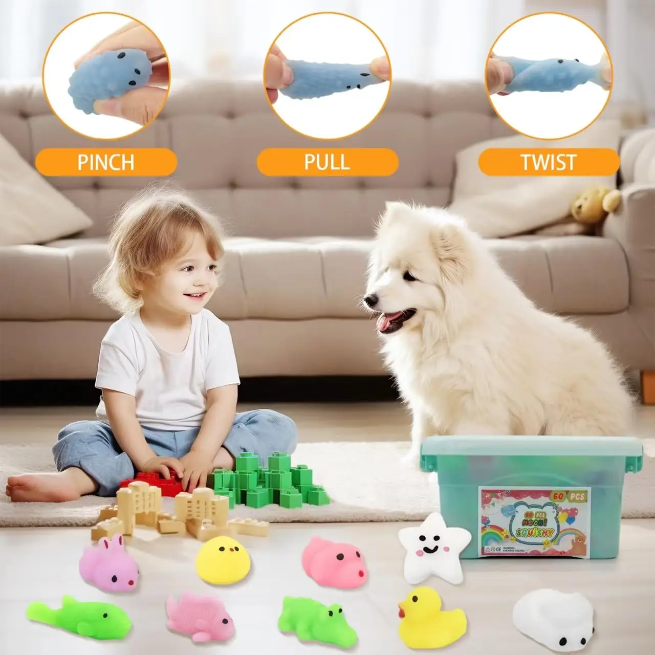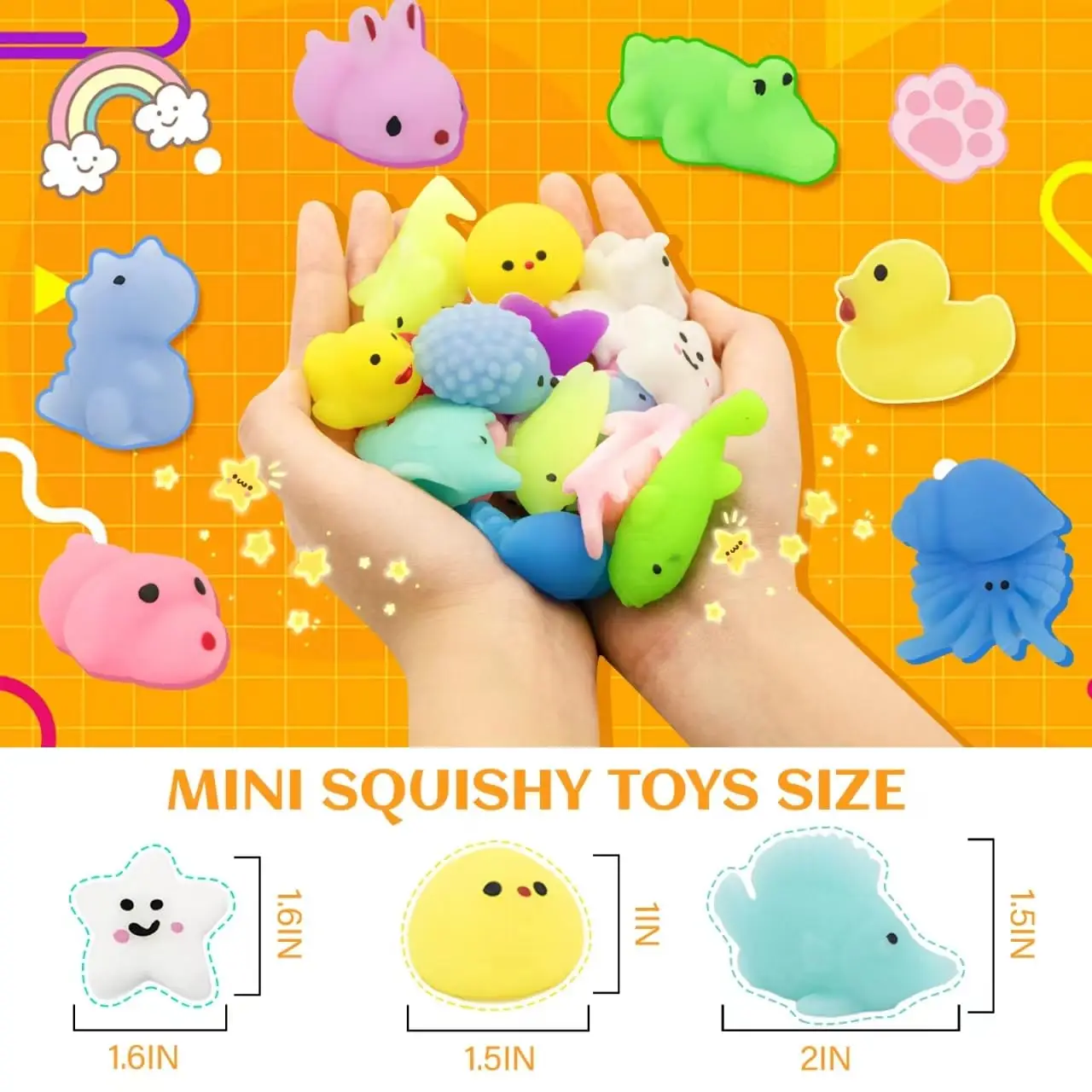 25/60/130 Pack Mochi Squishy Toys for Kids,Squishies Sensory Bulk Toys,Stress Relief Toys, Party Favors Mini Animals Toys Set