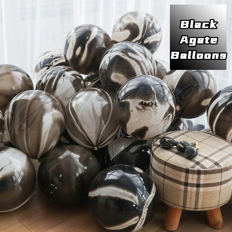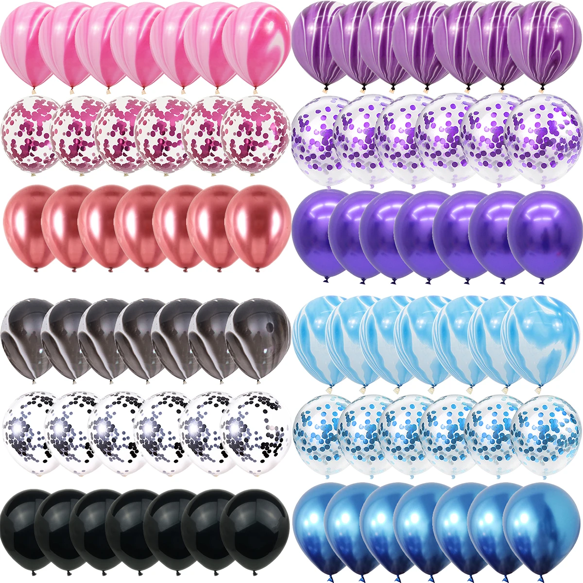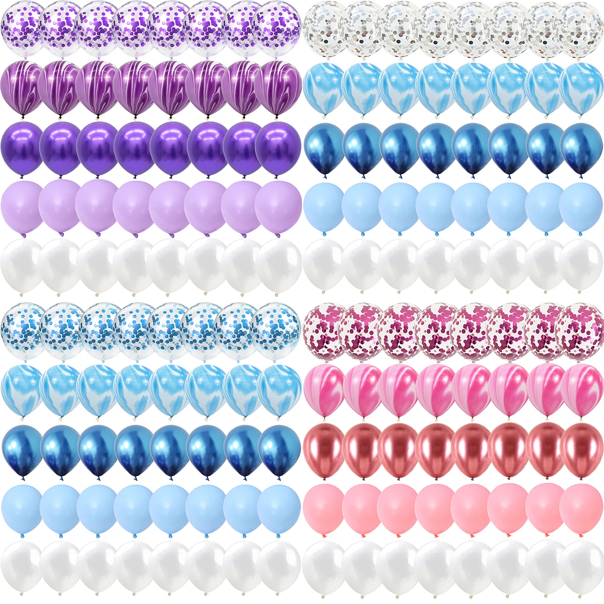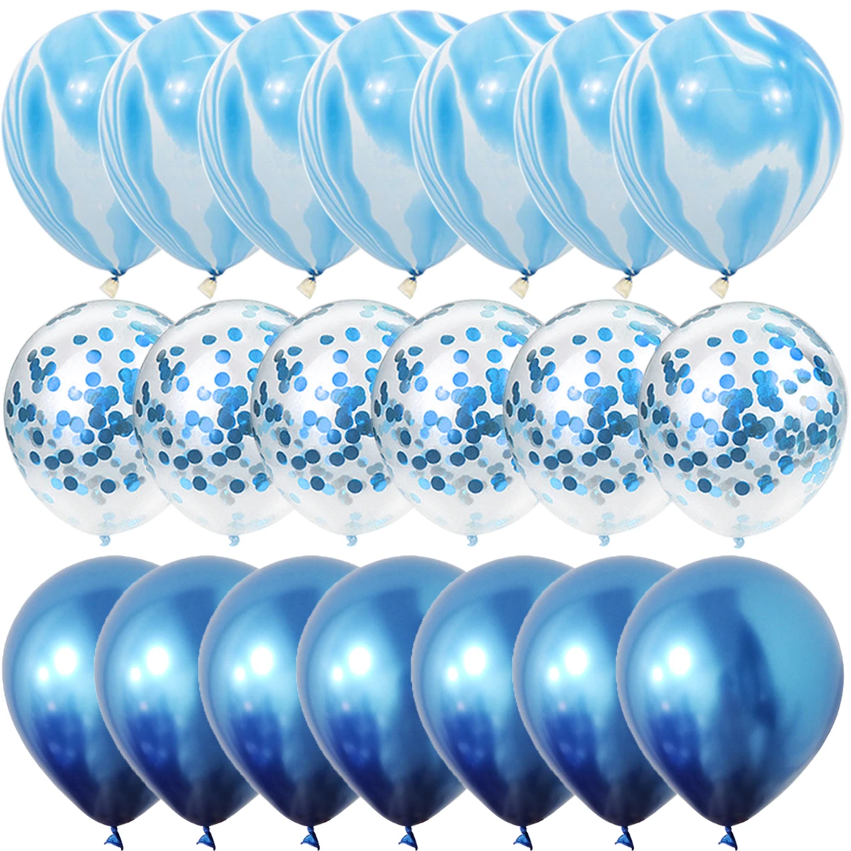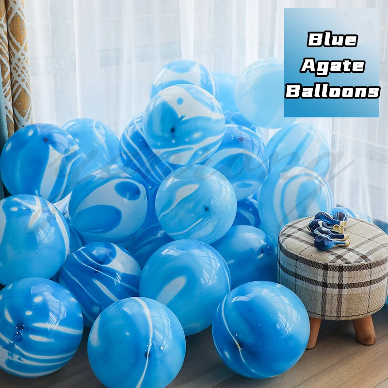 40 Pcs Blue Set Agate Marble Balloons Silver Confetti Balloon Wedding Valentine’s Day Baby Shower Birthday Party Decorations