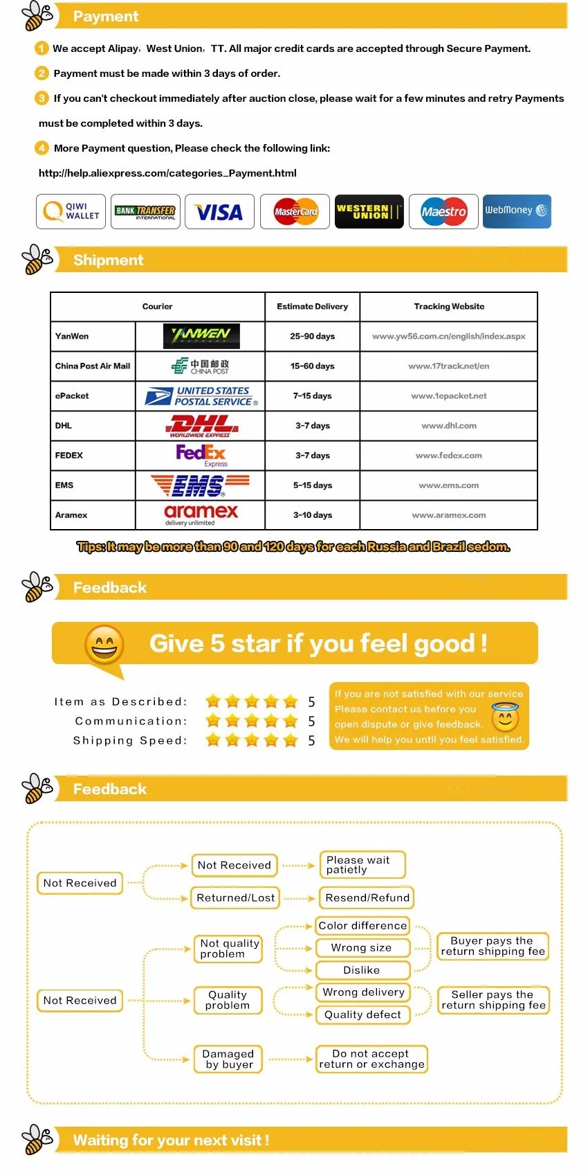 - If you did not receive the product within the guaranteed time( 45 days not including 2-5 day processing) you can request a refund or a reshipment.