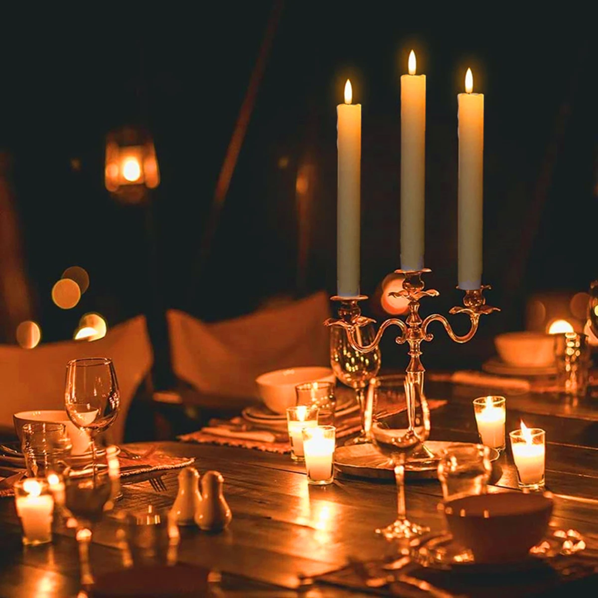 You don’t need to use a candlestick to stand (you can also use it with a candlestick), These taper candles made form real wax and 3D Wick realistic flicker design, feels and looks like a real wax taper candle flame. Warm light glow creates a romantic atmosphere when use as dinner, party, wedding, birthday, Christmas home decoration.