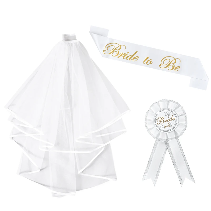 Bachelorette Party Decor Groom Bride To Be Sash Veil Badge for Wedding Bridal Shower Decoration Hen Party Supplies Team Bride