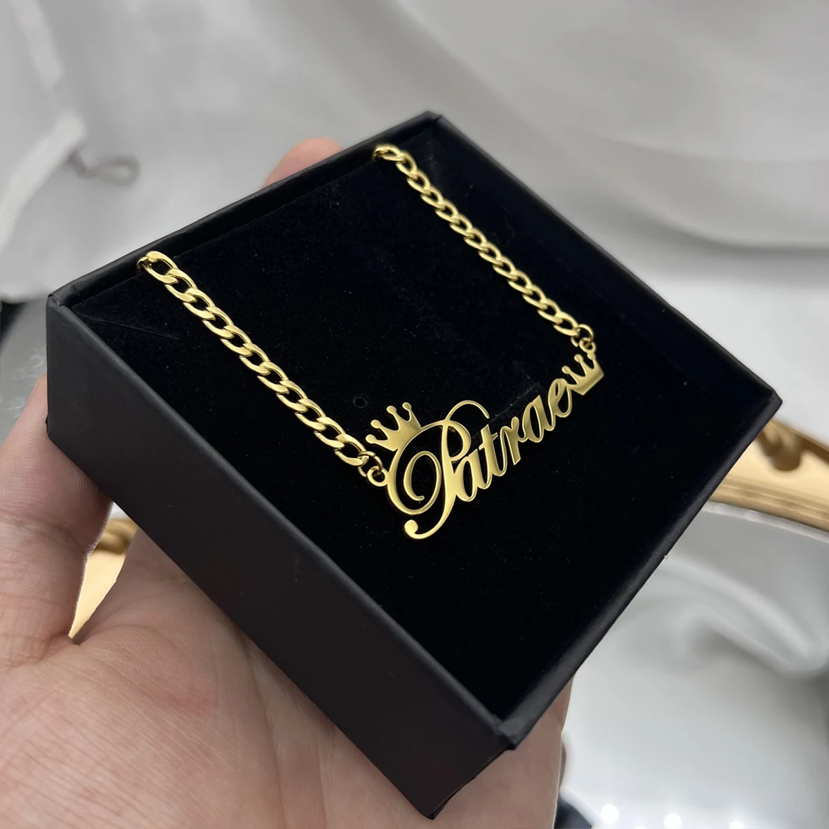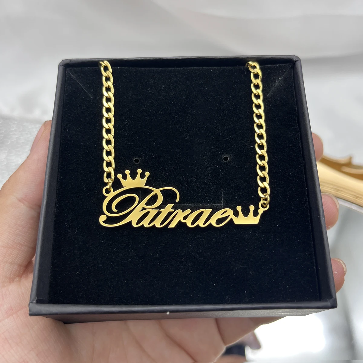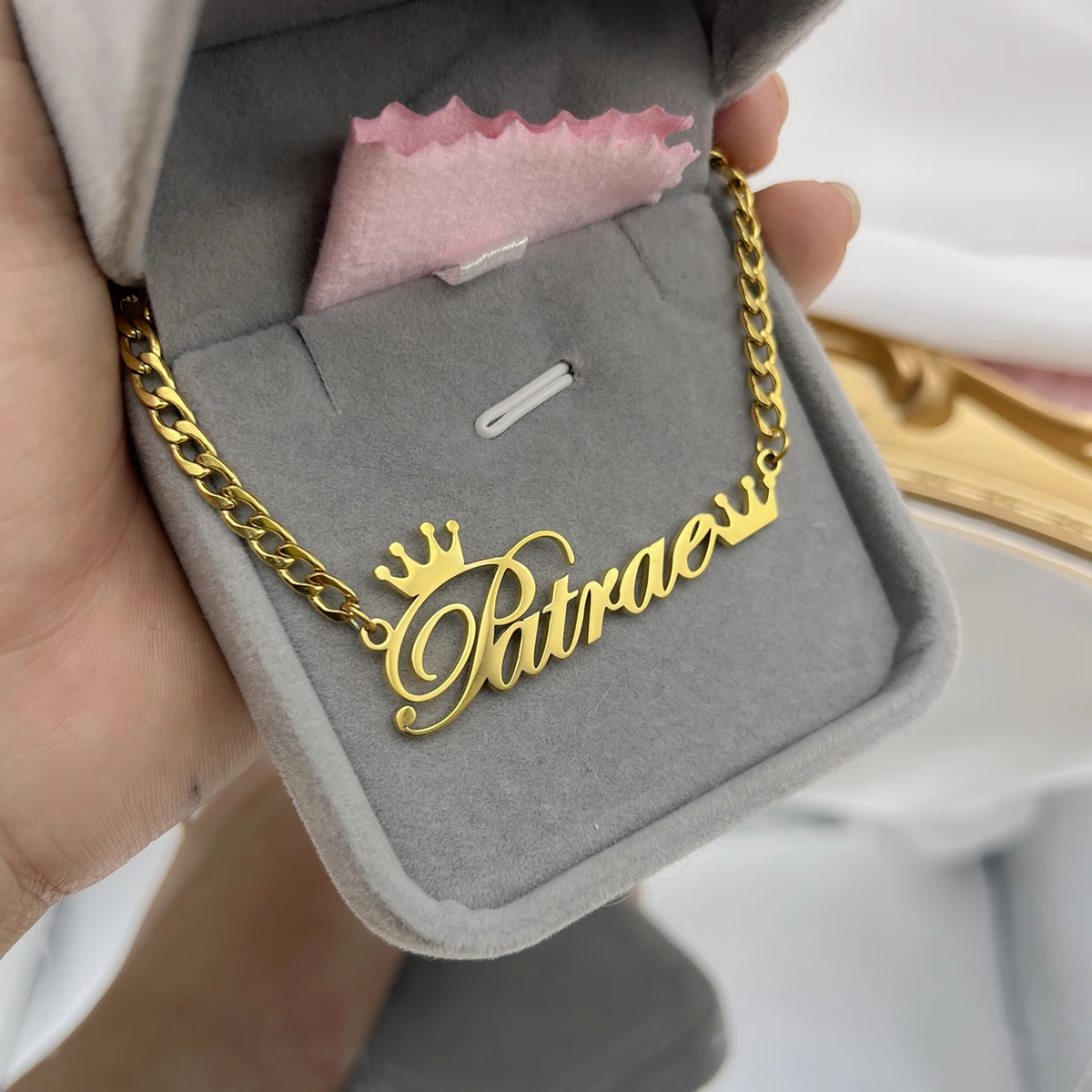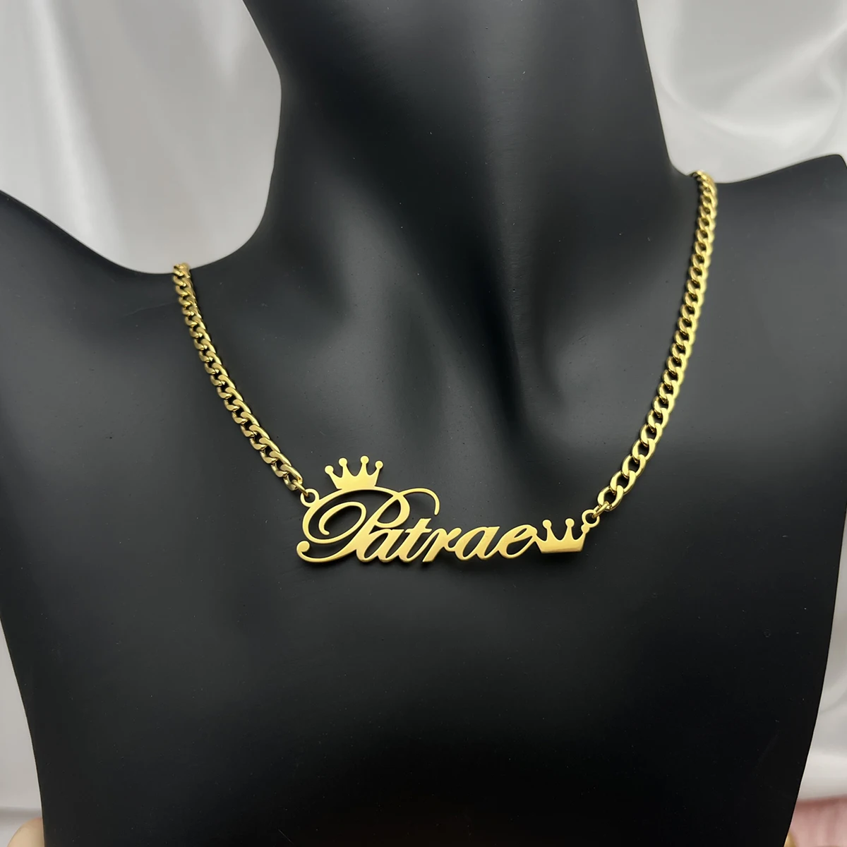 Name:Custom Name Necklace with Crown Stainless Steel Cuban Chain Necklace Custom Choker Gold Necklace Jewelry Valentine’s Day Gift