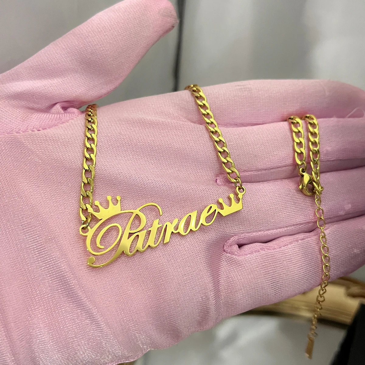 Custom Name Necklace with Crown Stainless Steel Cuban Chain Necklace Custom Choker Gold Necklace Jewelry Quinceanera Day Gift