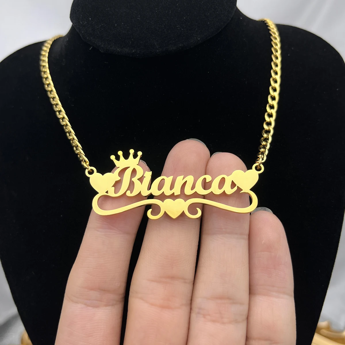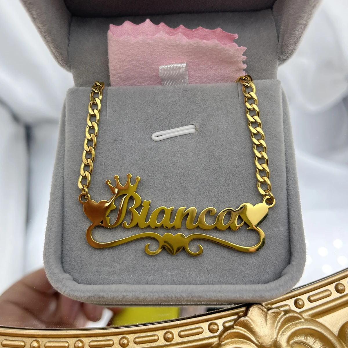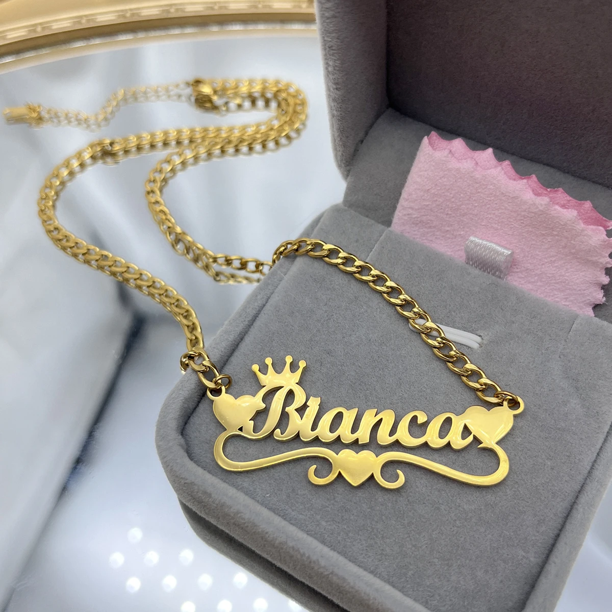 Custom Name Necklace with Heart Personalized Cuban Chain Necklace for Girl Custom Stainless Steel Gold Necklae For Women Gift