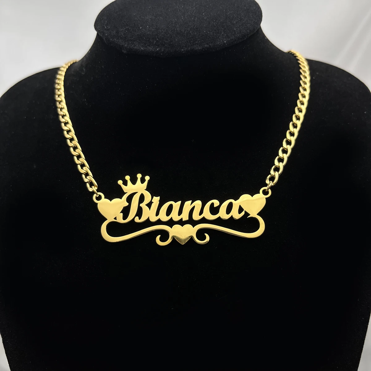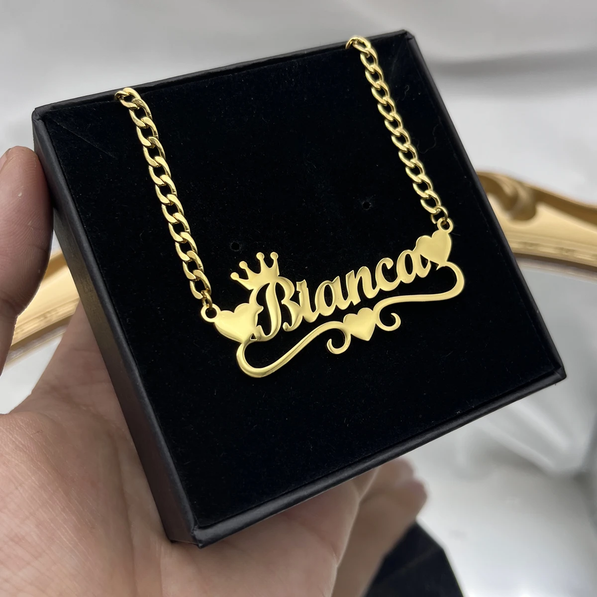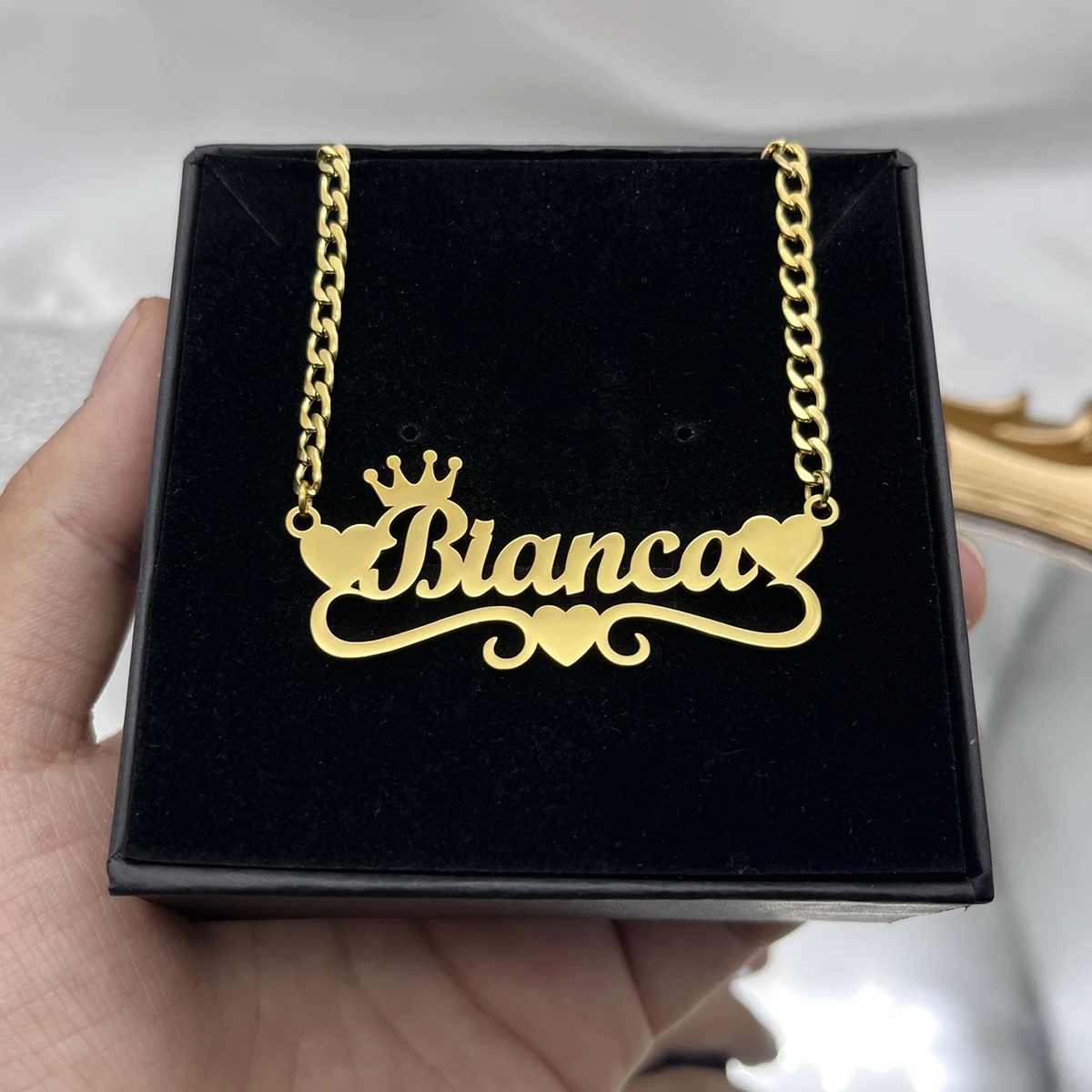 Custom Name Necklace with Heart Personalized Cuban Chain Necklace for Girl Custom Stainless Steel Gold Necklae For Women Gift