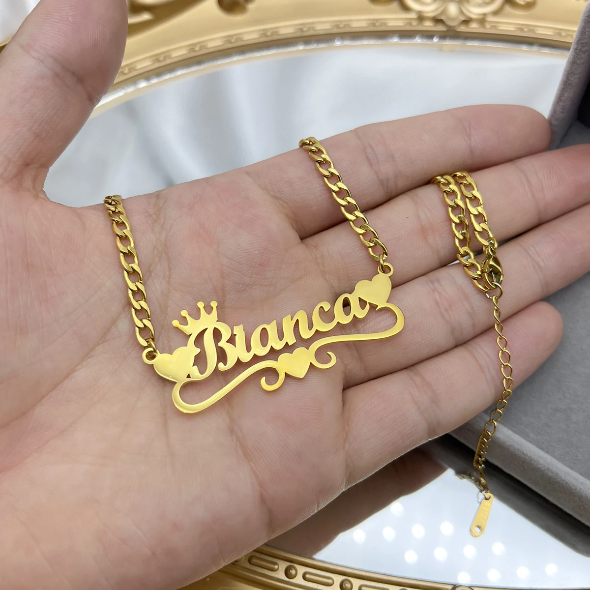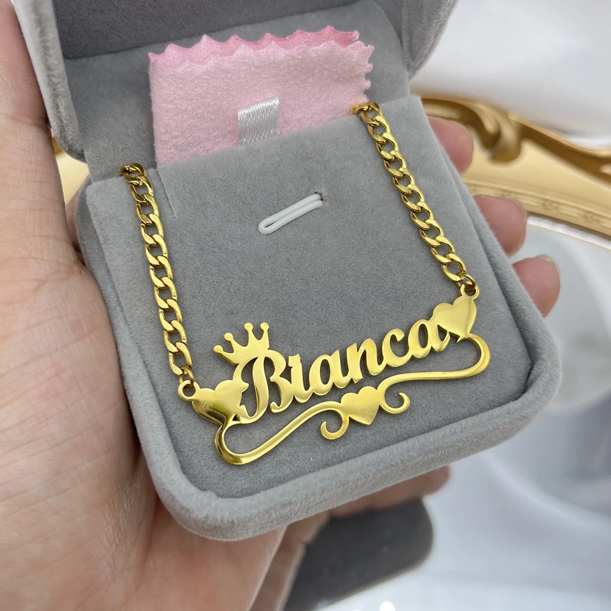 Custom Name Necklace with Heart Personalized Cuban Chain Necklace for Girl Custom Stainless Steel Gold Necklae For Women Gift