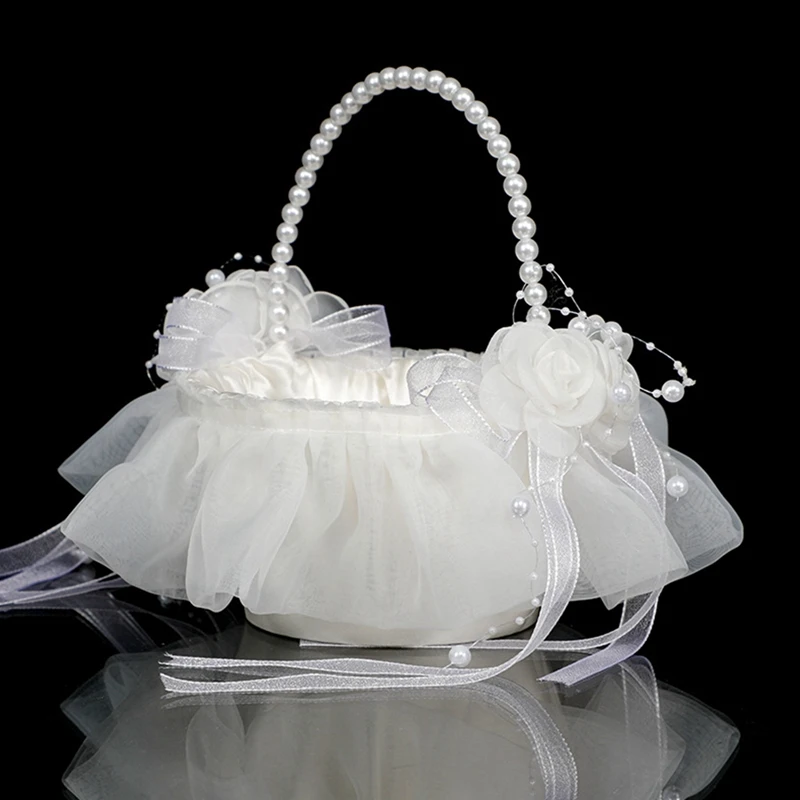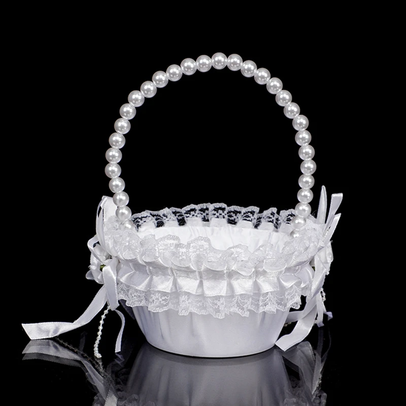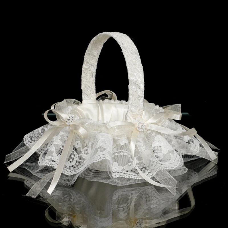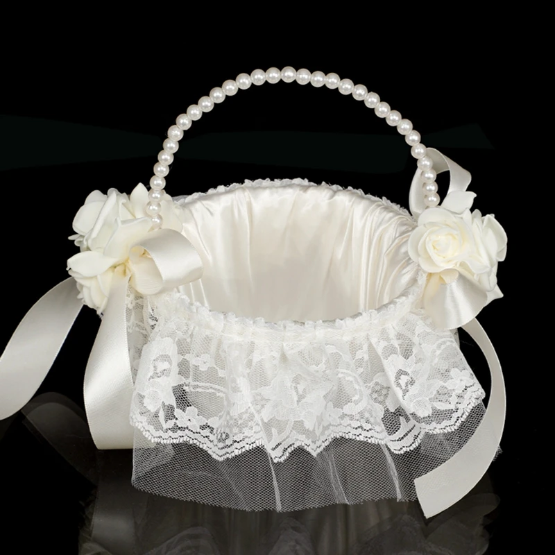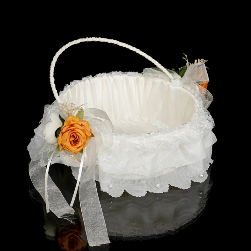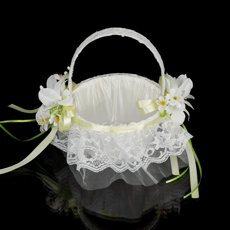 Flower Girl Basket White Lace Wedding Flower Baskets for Flower Bride/Kid Hand Held Wedding Ceremony Decoration Supplies
