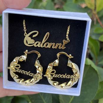 DUOYING Custom 30mm Earring Set Personalized Stainless Steel Gold Nameplate Necklace Box Chain Letter Earring For Kids Jewelry