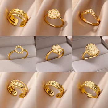 Stainless Steel Rings for Women Men Gold Color Finger Ring Vintage Party Jewelry Waterproof Finger Accessories anillos mujer