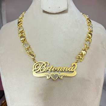 Customized Double Name Necklace Hip Hop Letter Necklace Double Plated Stainless Steel Names Chain For Women Gothic Jewelry Gifts
