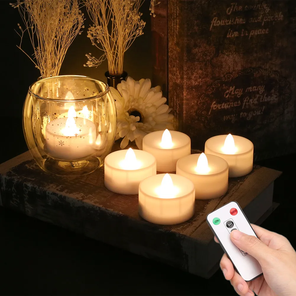 The flickering flameless Tea Lights are ideal for decorations, They can be used as mood lights or night lights with votive holders or glass cups. You can put the battery-operated tealight on a table or other places in restaurants, home and garden weddings, parties, and festival decorations.