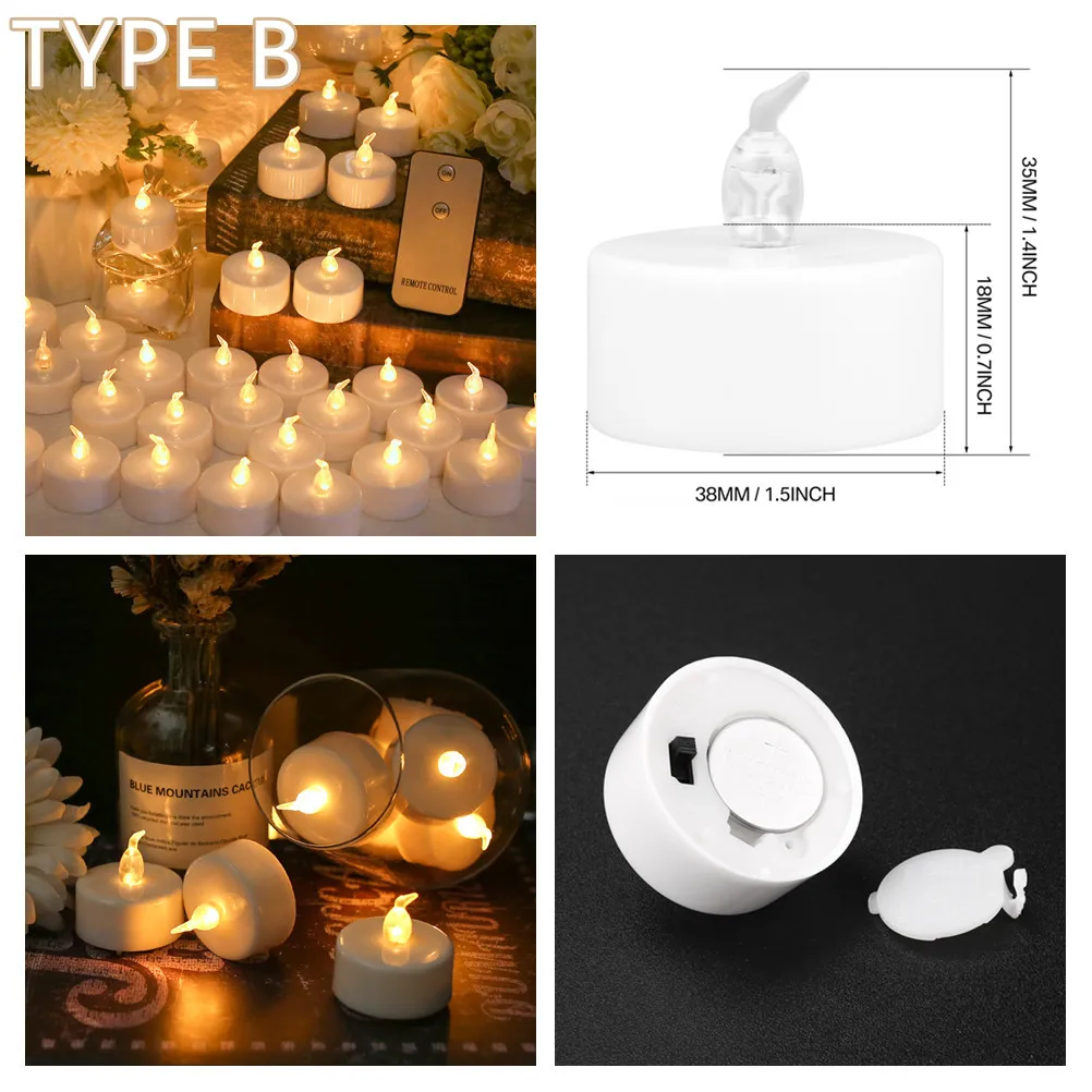 The flickering flameless Tea Lights are ideal for decorations, They can be used as mood lights or night lights with votive holders or glass cups. You can put the battery-operated tealight on a table or other places in restaurants, home and garden weddings, parties, and festival decorations.