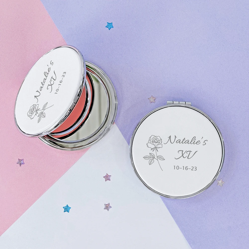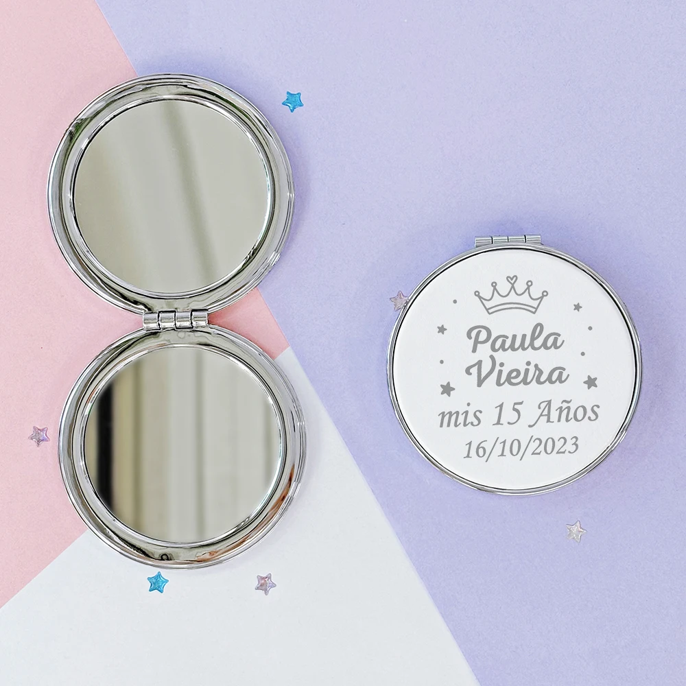 Mis Quince XV Años Party Favors Quinceañera Gifts for Guests Personalized Pocket Makeup Mirrors Girls 15th Birthday Souvenirs