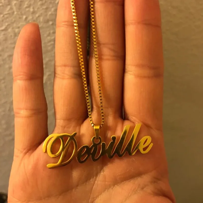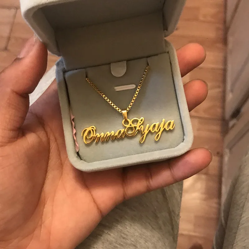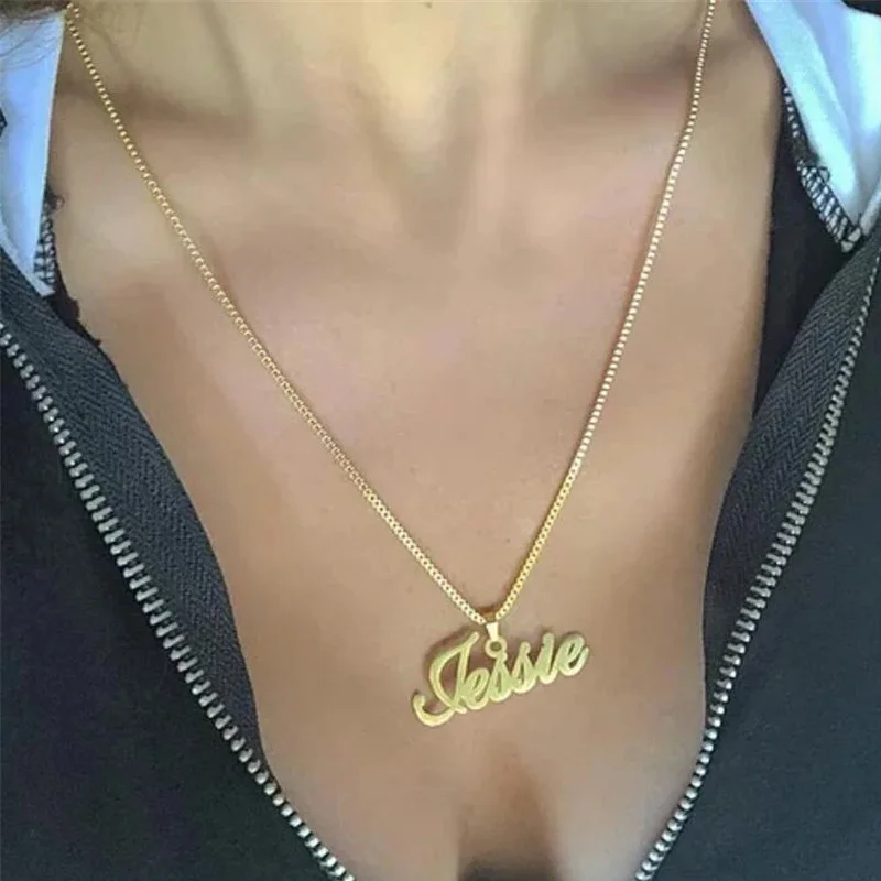 Personalized Box Chain Name Necklace Stainless Steel For Women Fashion Nameplate Pendant Necklace Jewelry BFF Femme