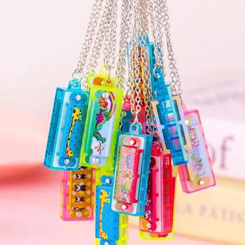 10Pcs Cartoon Mini Harmonica with Necklace Musical Instrument Toys for Kids Birthday Party Favors Baby Shower Pinata Fillers