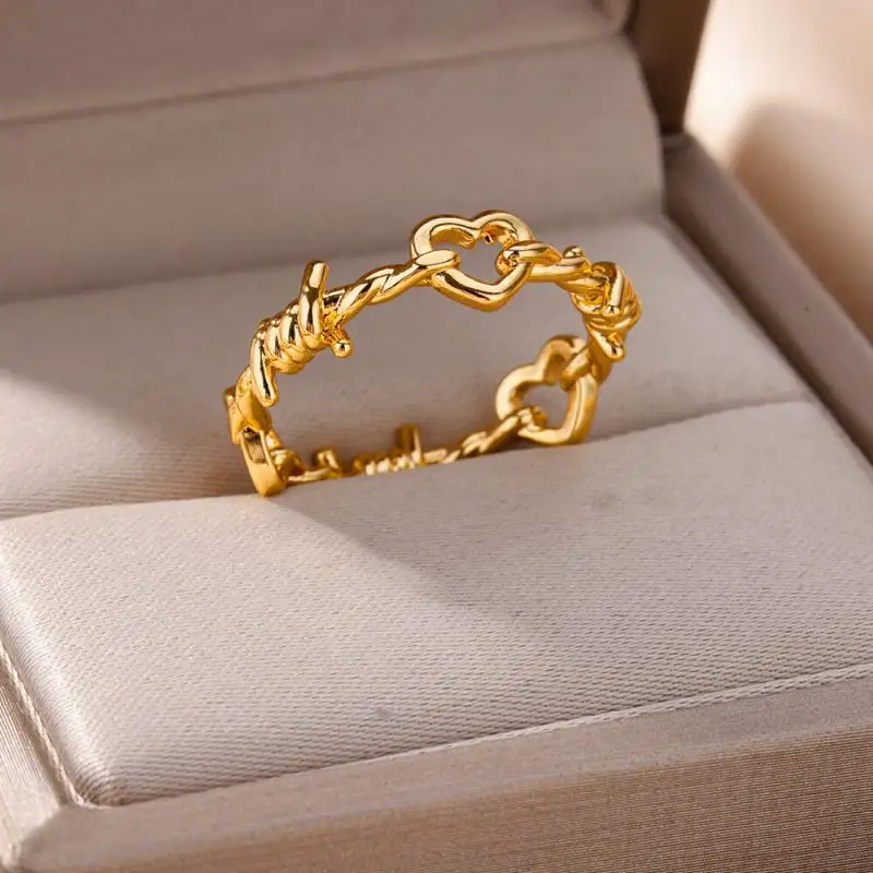 It has a lot of rings, they all seem to be made of stainless steel. I had some previous ones and they were not damaged, good product.