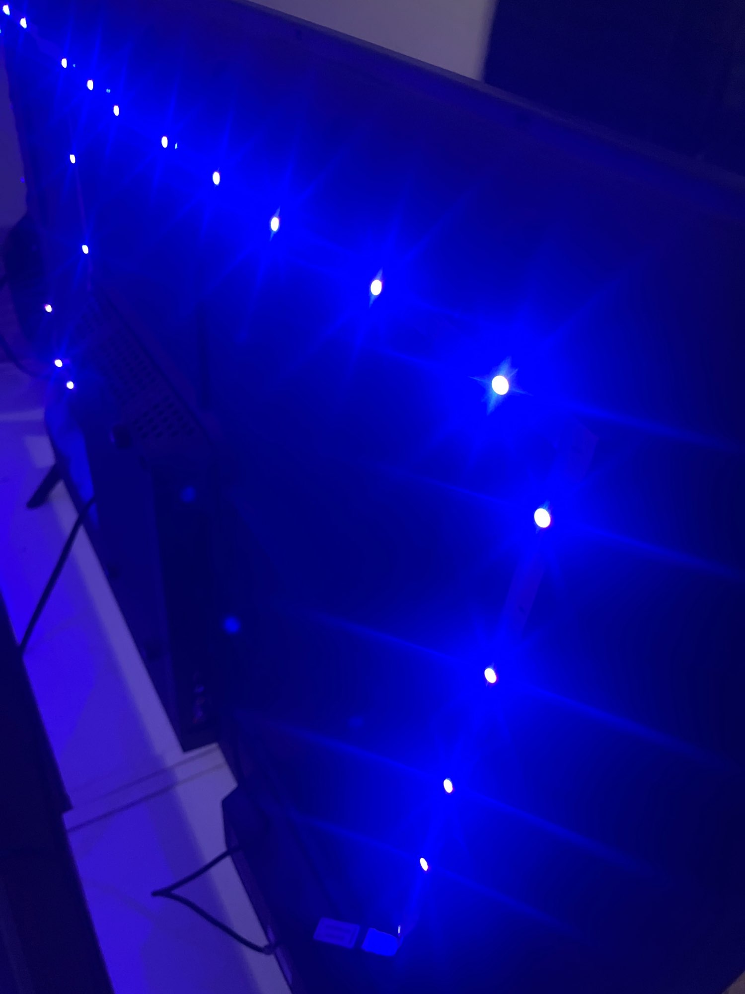 At first it didn’t work, but then I realized I had it plugged in the wrong way with the power source and the LED lights and I guess they’re kind of sort of on the same frequency as my TV on my TV on or off it’ll change color or whatever and recently I just use them and the colors are all mismatchedso for green it’s like a purple and for the purple I wanted it’s like shades of green